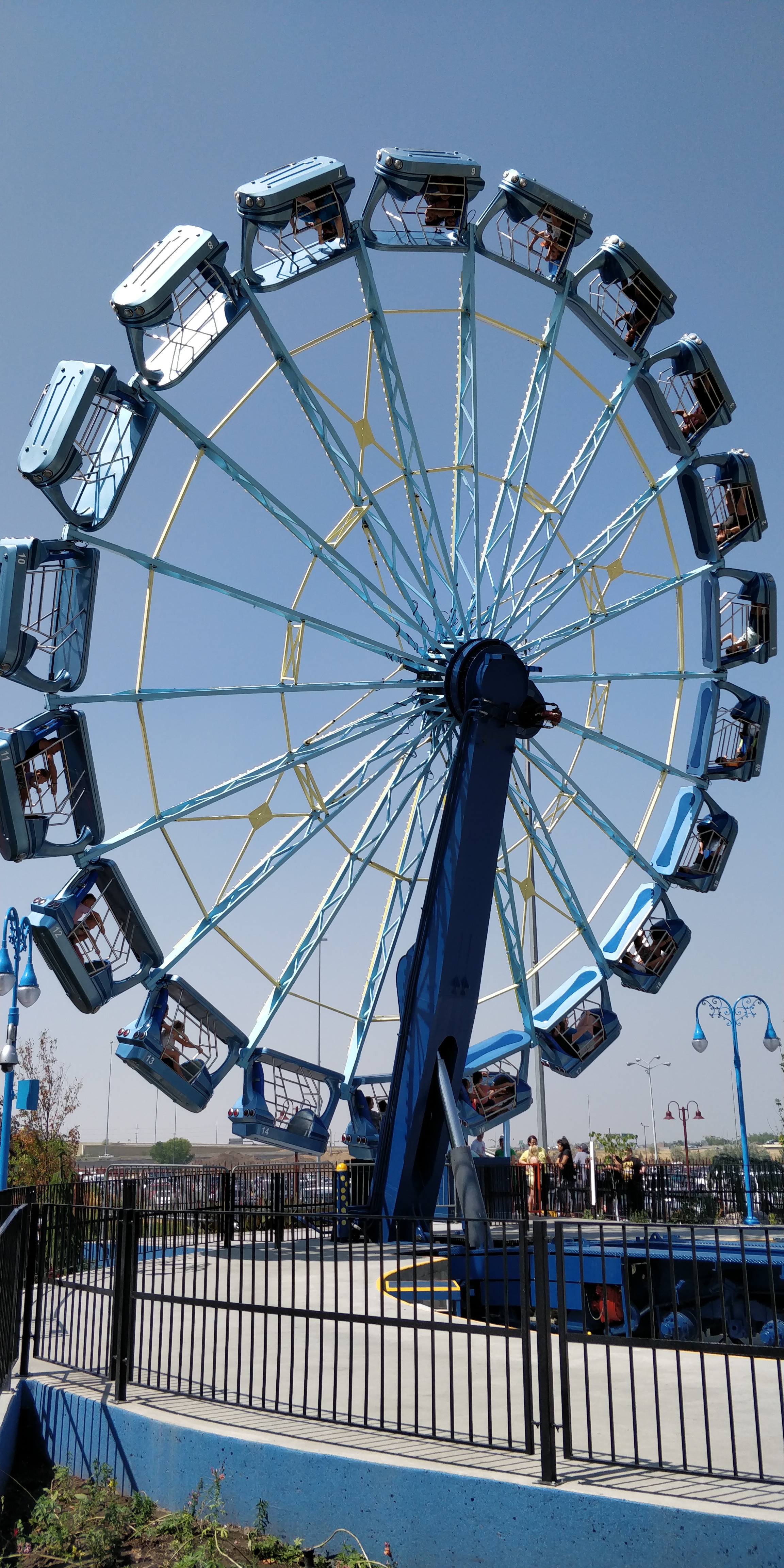 Screamer vertical in the air with the ride fully in motion