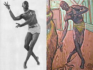 A dancing man was included in the original mural, but was painted out of the 2017 copy. This appears to be the only significant change made to the mural. The dancing man is likely based on photographs of actor Geoffrey Holder from the 1950's.