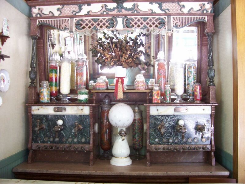The old soda fountain inside of the Pioneer Village Bakery