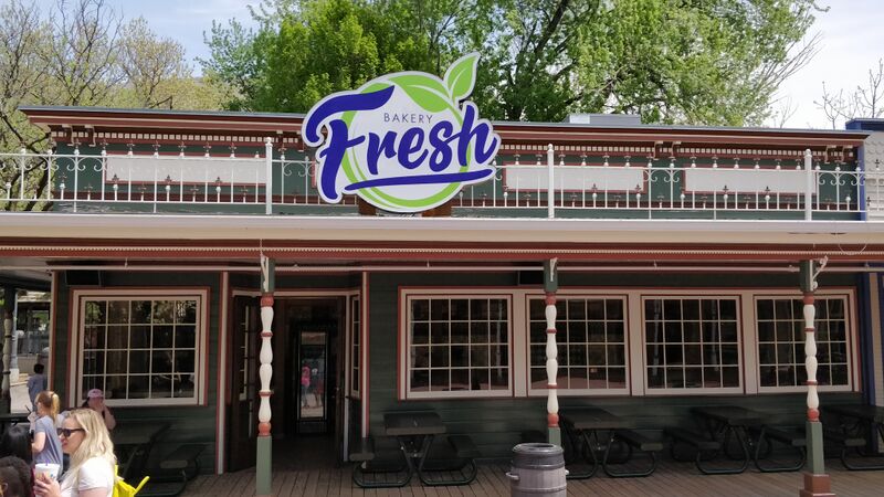 The building and sign of Bakery Fresh in 2018